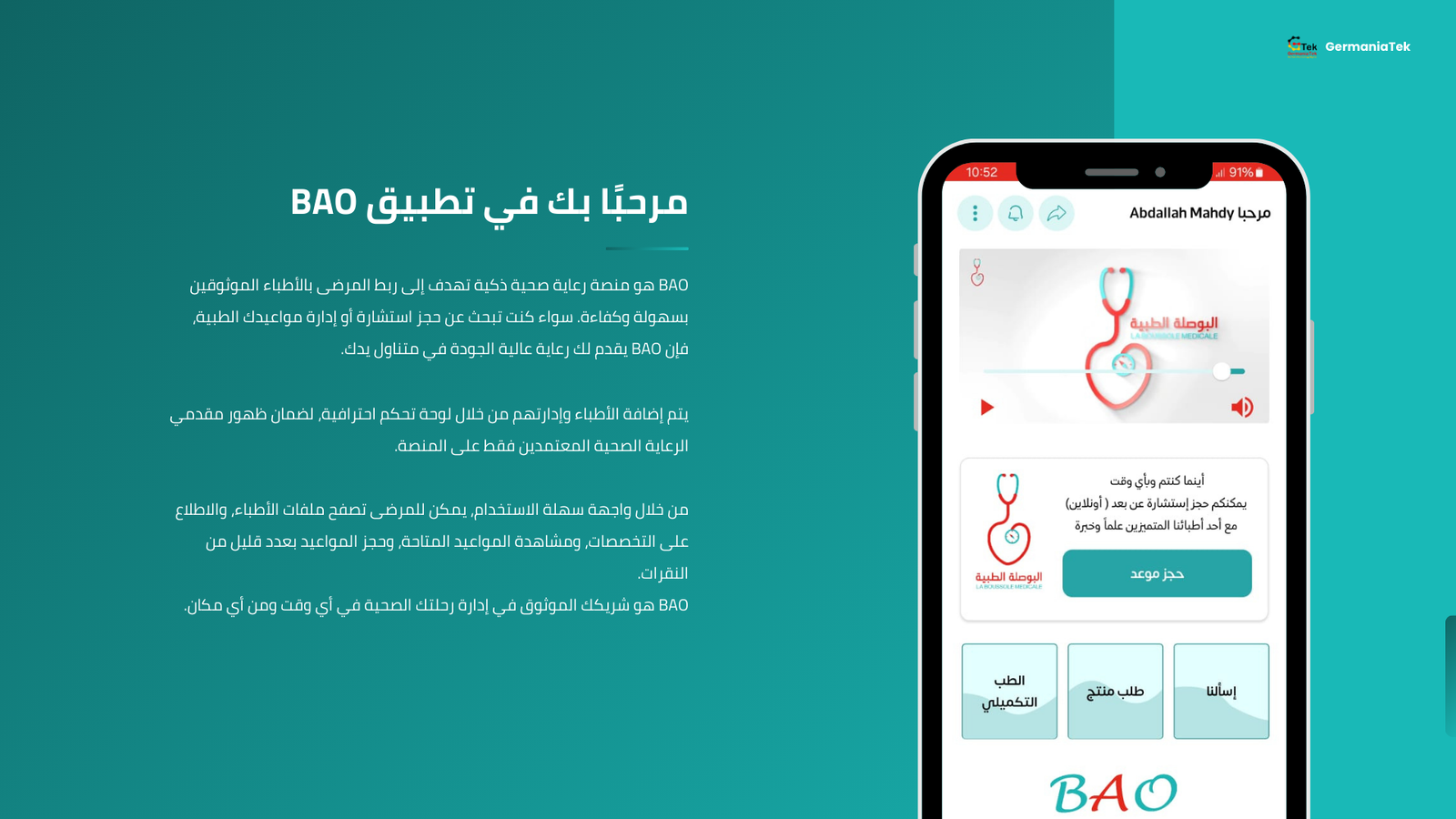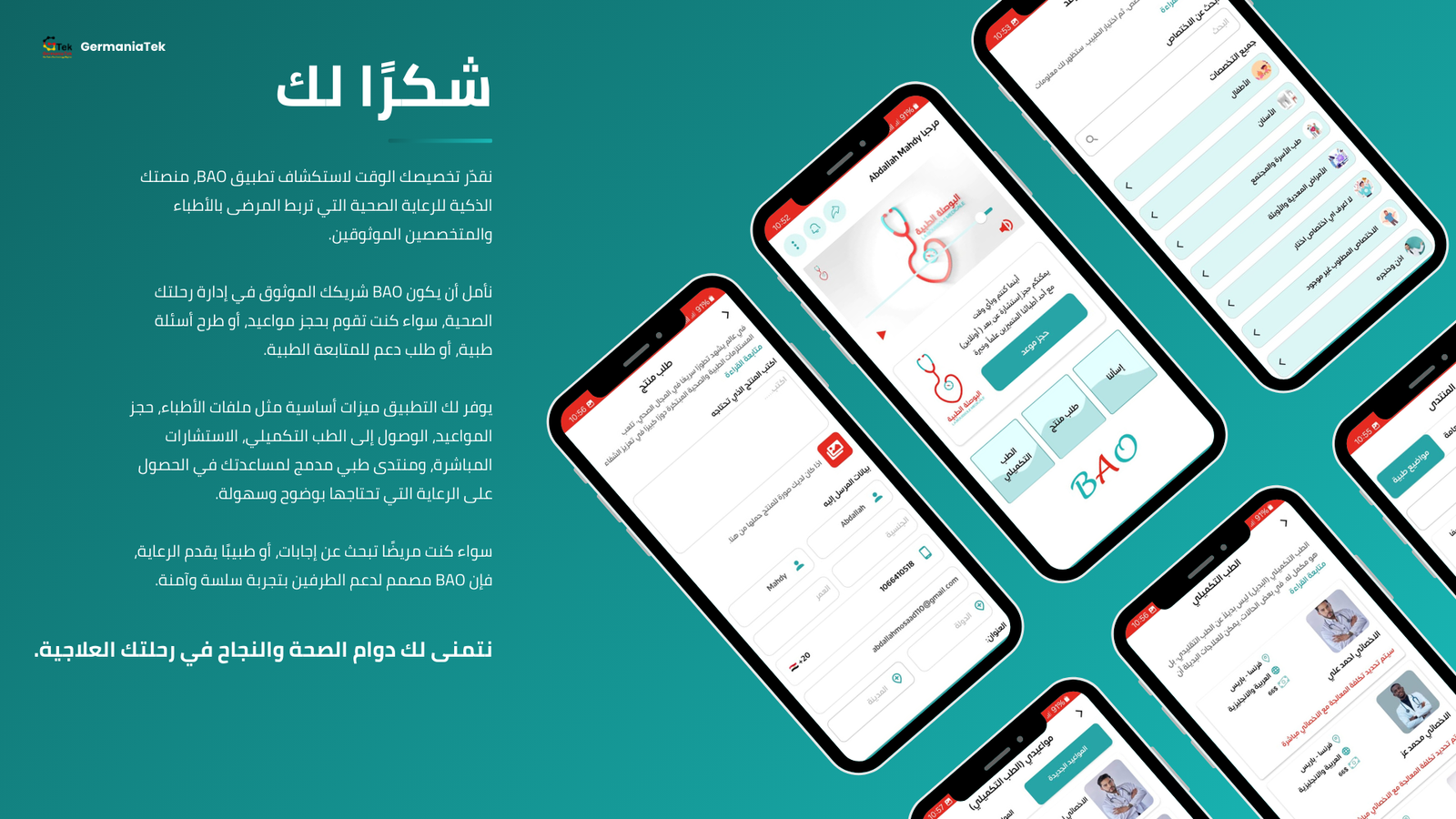 BAO هو نظام رقمي شامل لإدارة العلاقة بين الأطباء والمرضى، يسهّل عمليات الحجز، الكشف، والاستشارات الطبية عبر الإنترنت.
